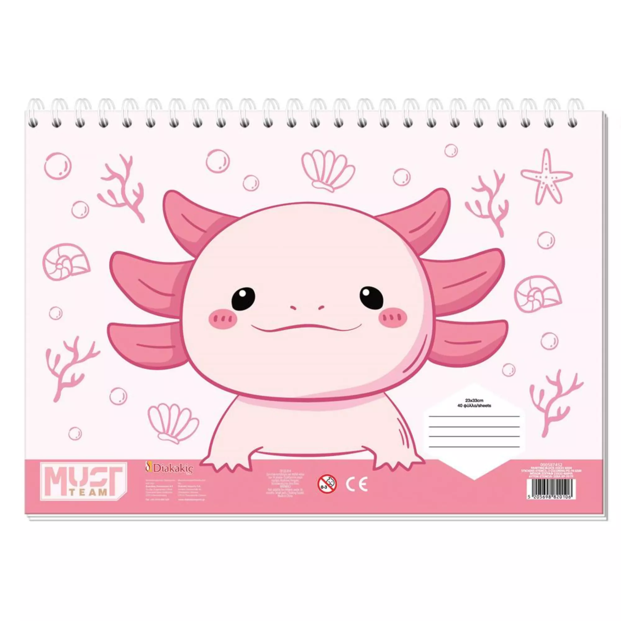 Μπλοκ Ζωγραφικής Must Team Axolotl με Αυτοκ-Στενσιλ- 2 Σελ Χρωμ. 2 Σχέδια