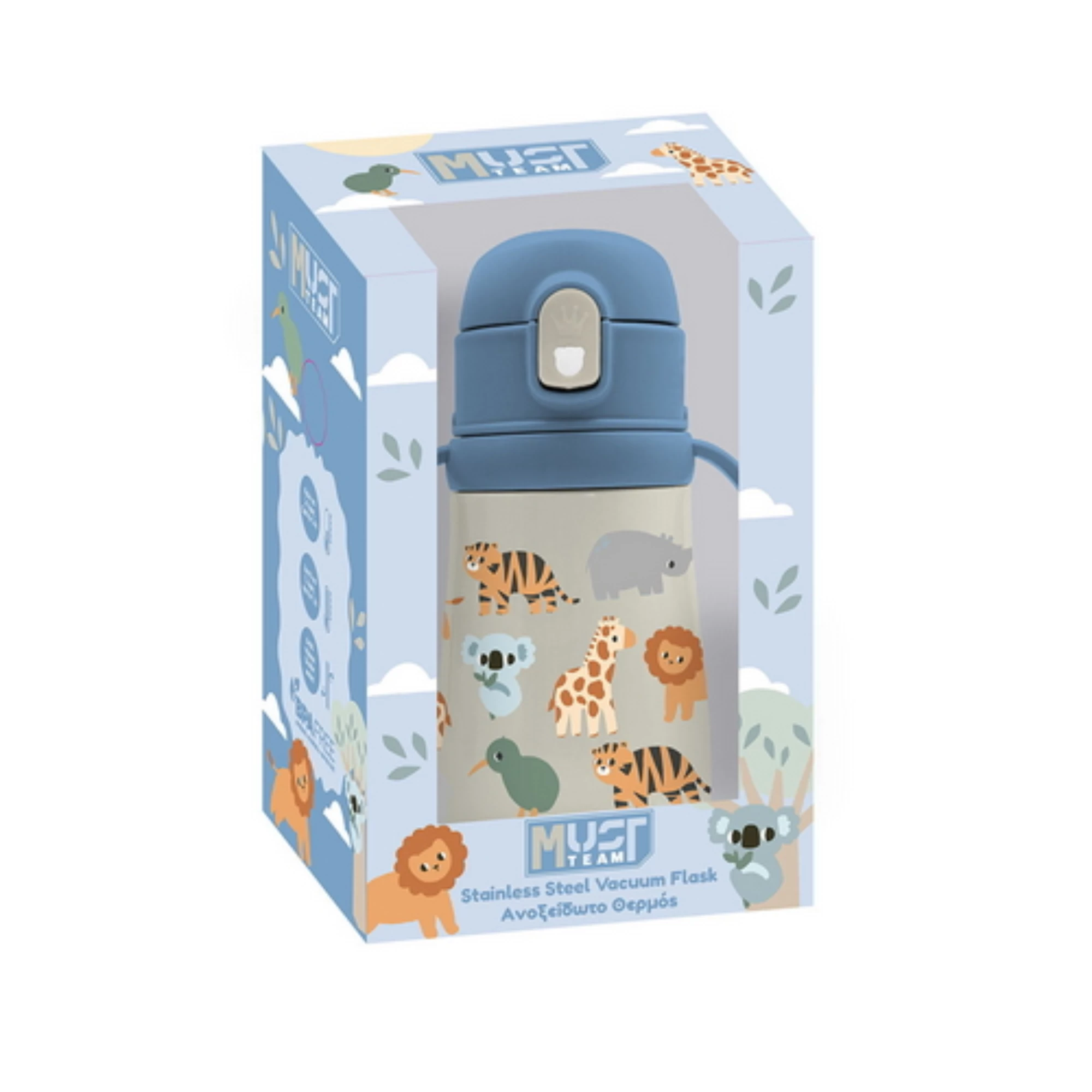 Παγούρι Θερμός Ανοξείδωτο Must Team Ζωάκια 350 ml με χερούλια και καλαμάκι, ιδανικό για παιδιά, με πρακτικό σχεδιασμό που προσφέρει άνετο κράτημα και ευκολία στη χρήση. Διαθέτει διπλό τοίχωμα για διατήρηση της θερμοκρασίας (ζεστά ή κρύα ροφήματα για ώρες), ενσωματωμένο καλαμάκι και εργονομικά χερούλια για μικρά χεράκια. Κατάλληλο για το σχολείο, τις βόλτες και κάθε δραστηριότητα.