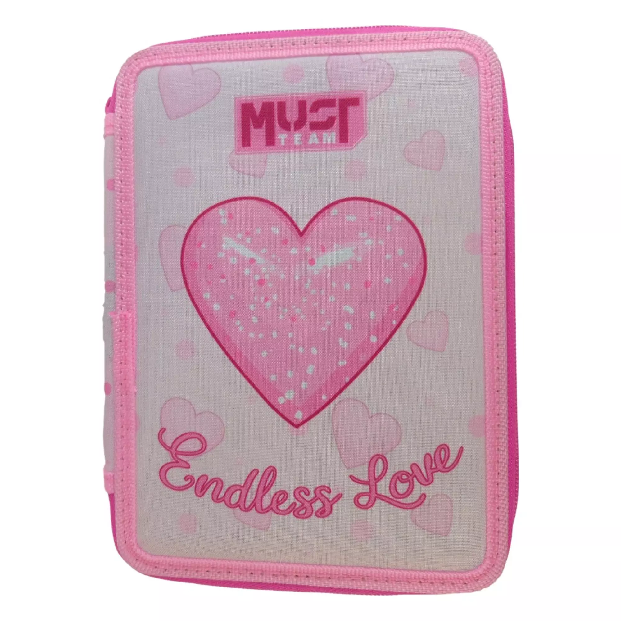 – H Σχολική Κασετίνα Διπλή Γεμάτη Must Team Compact Endless Love περιέχει στυλό, μολύβι, γόμα, ξύστρα, χάρακες, ξυλομπογιές και μαρκαδόρους