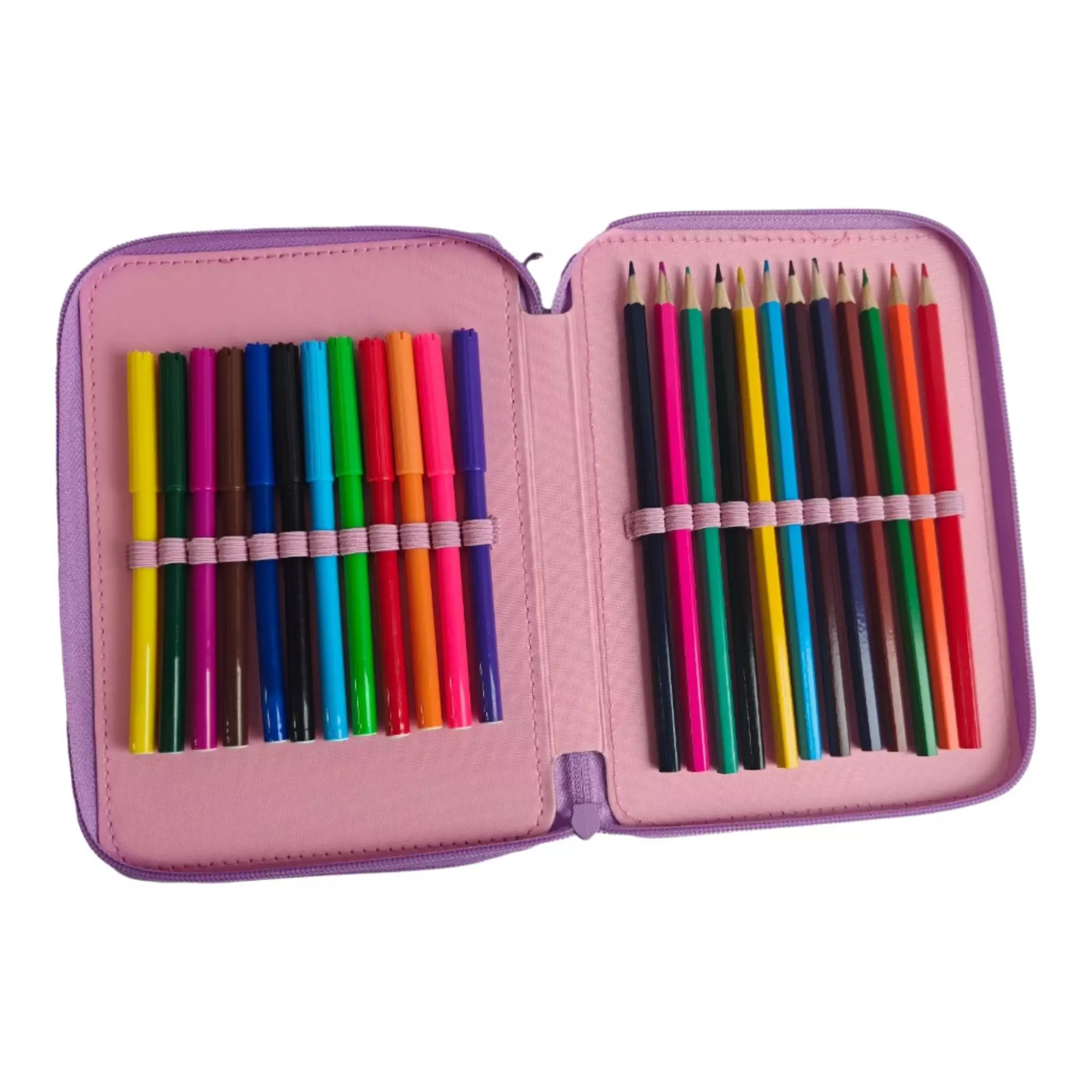 – H Σχολική Κασετίνα Διπλή Γεμάτη Must Team Cosmetics περιέχει στυλό, μολύβι, γόμα, ξύστρα, χάρακες, ξυλομπογιές και μαρκαδόρους
