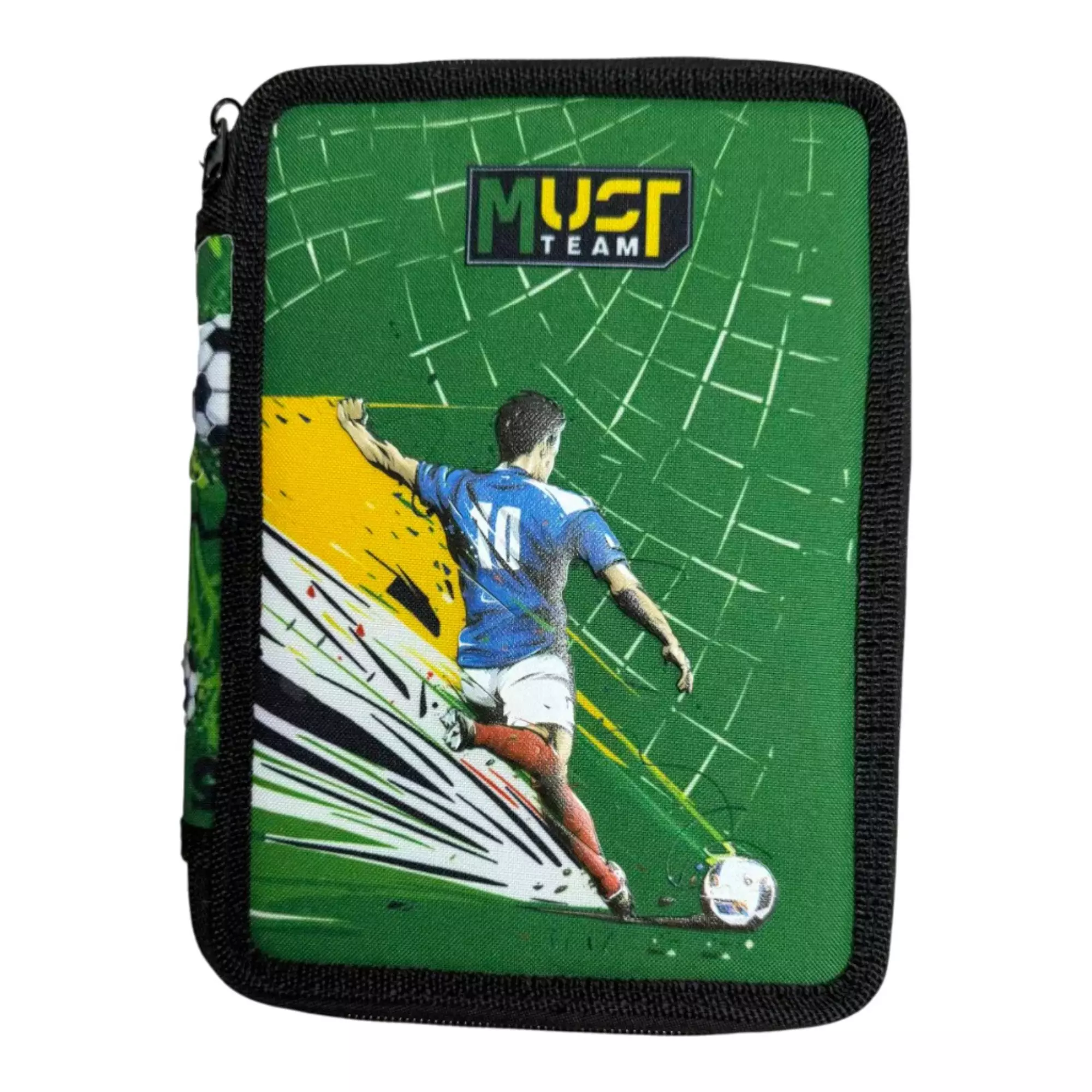 – H Σχολική Κασετίνα Διπλή Γεμάτη Must Team Football περιέχει στυλό, μολύβι, γόμα, ξύστρα, χάρακες, ξυλομπογιές και μαρκαδόρους