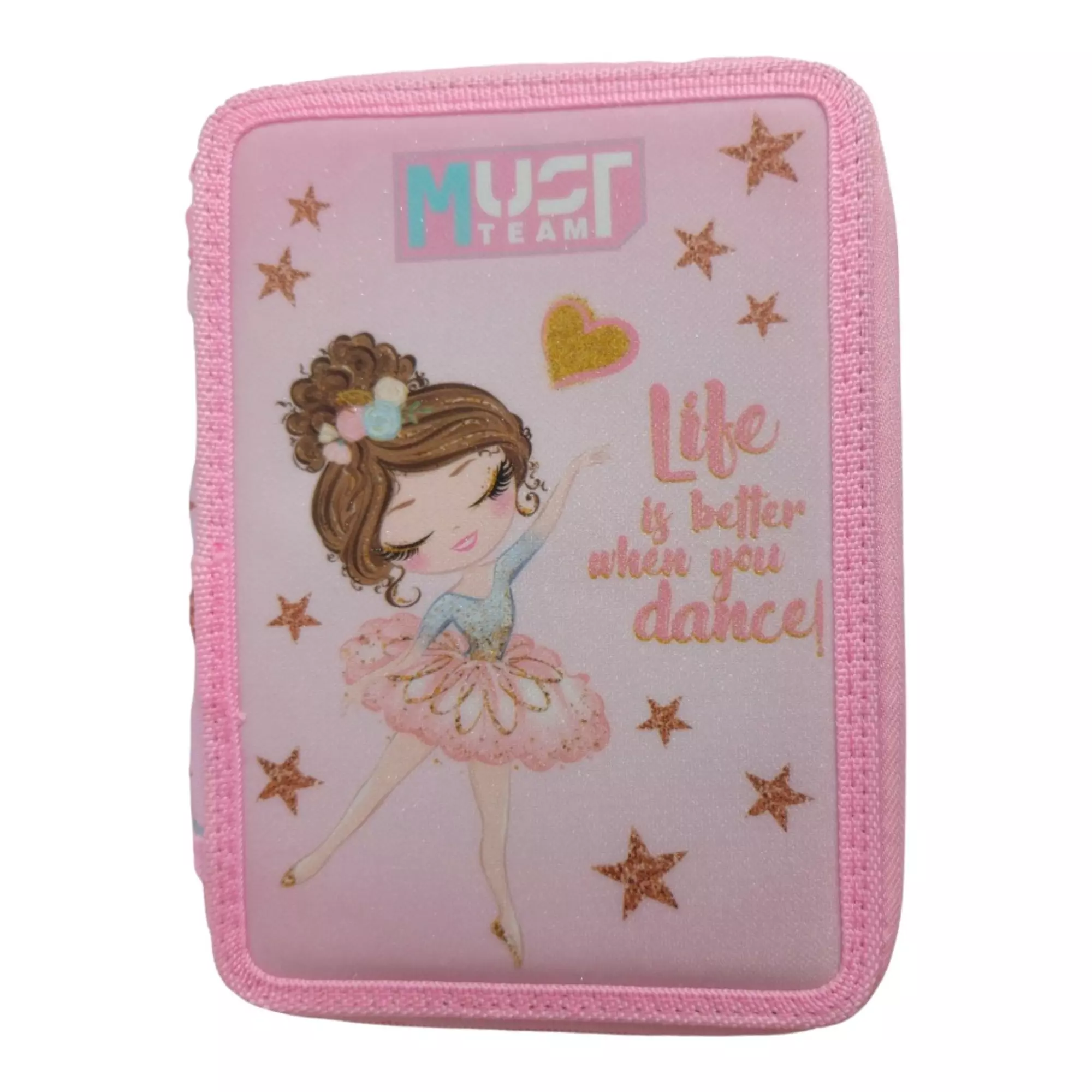– H Σχολική Κασετίνα Διπλή Γεμάτη Must Team Shiny Ballerina περιέχει στυλό, μολύβι, γόμα, ξύστρα, χάρακες, ξυλομπογιές και μαρκαδόρους