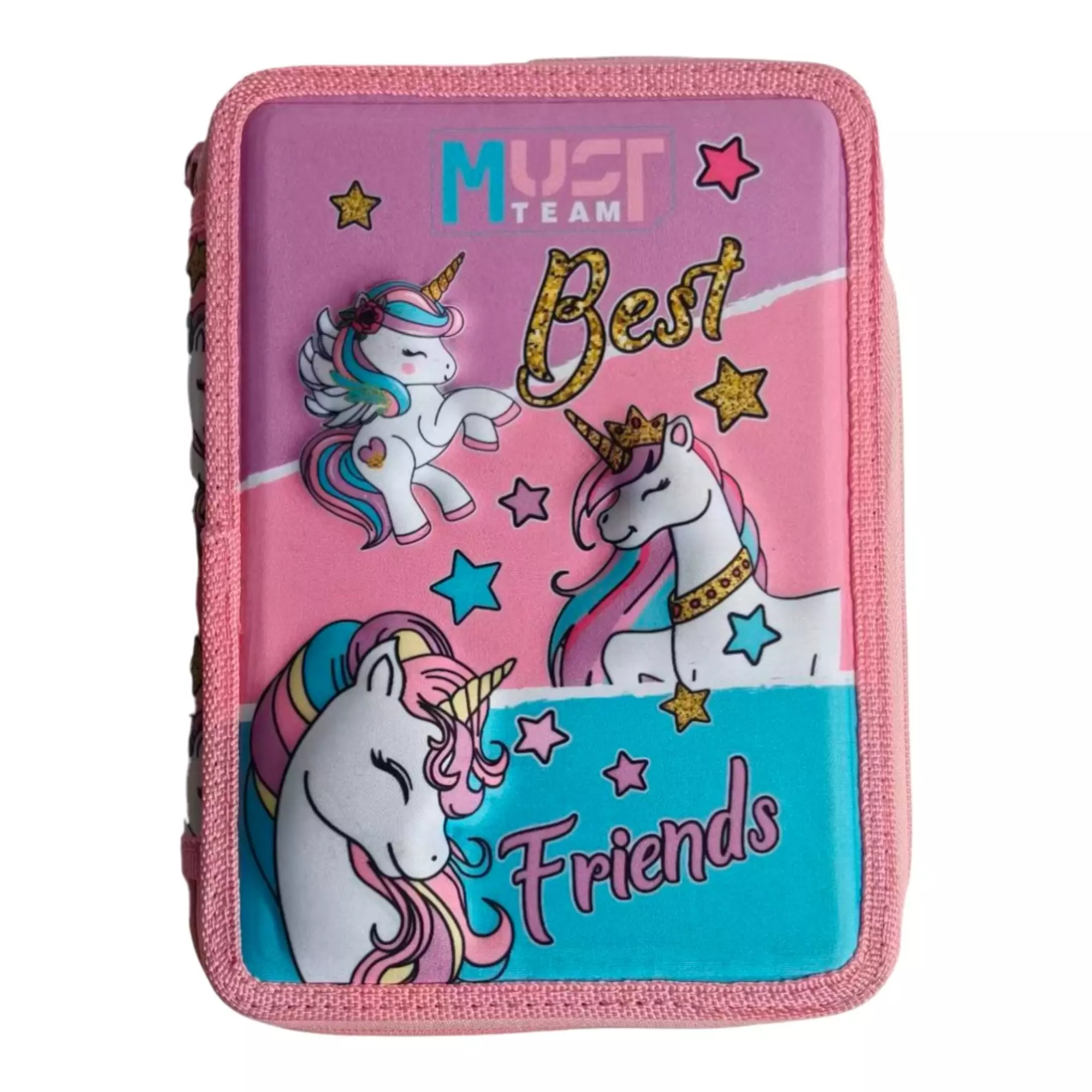 – H Σχολική Κασετίνα Διπλή Γεμάτη Must Team Unicorn περιέχει στυλό, μολύβι, γόμα, ξύστρα, χάρακες, ξυλομπογιές και μαρκαδόρους