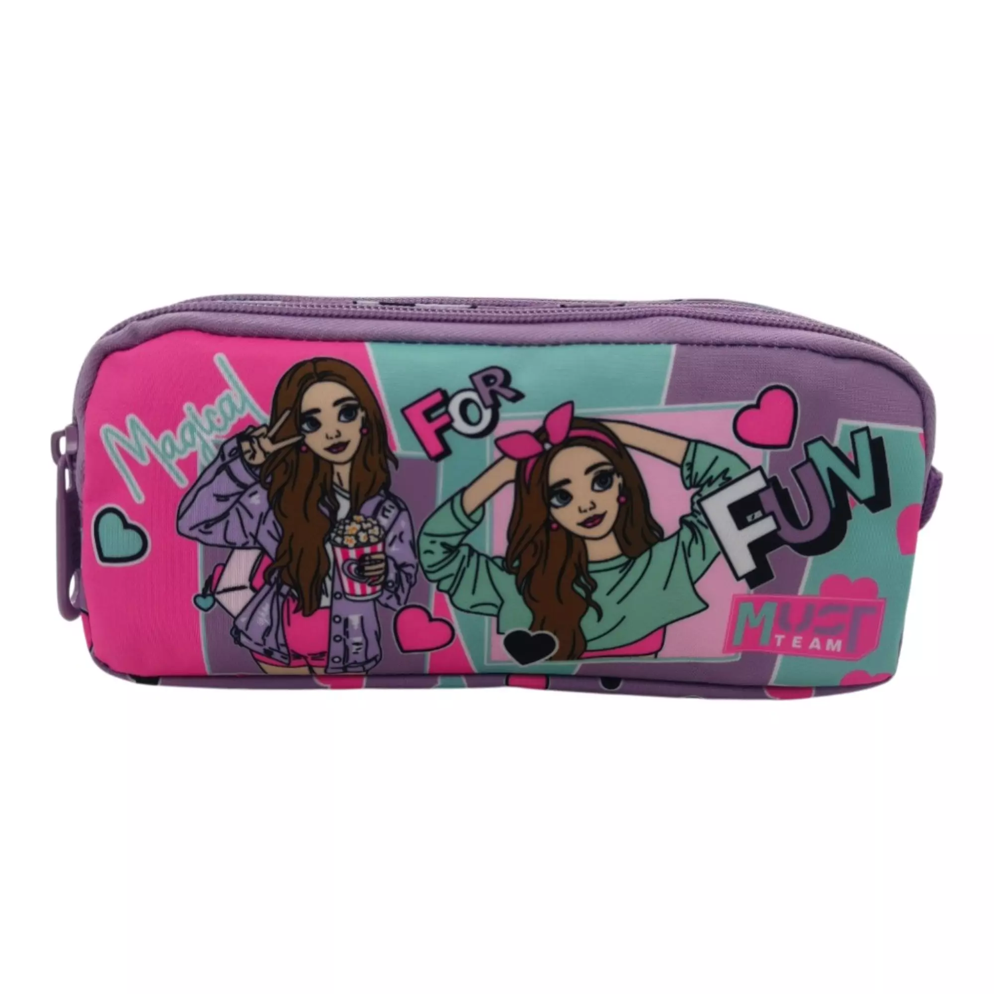 Σχολική κασετίνα βαρελάκι Must Team Besties με 2 θήκες, ιδανική για οργάνωση και αποθήκευση όλων των απαραίτητων σχολικών ειδών. Διαθέτει ευρύχωρους χώρους για στυλό, μολύβια, μαρκαδόρους και μικροαντικείμενα, διατηρώντας τα πάντα τακτοποιημένα και εύκολα προσβάσιμα. Κατασκευασμένη από ανθεκτικά υλικά για καθημερινή χρήση στο σχολείο, συνδυάζει πρακτικότητα και μεγάλη χωρητικότητα. Ιδανική επιλογή για μαθητές που αναζητούν μια λειτουργική και στιλάτη σχολική κασετίνα, που ταιριάζει εύκολα με κάθε σχολική τσάντα πλάτης ή τρόλεϊ.