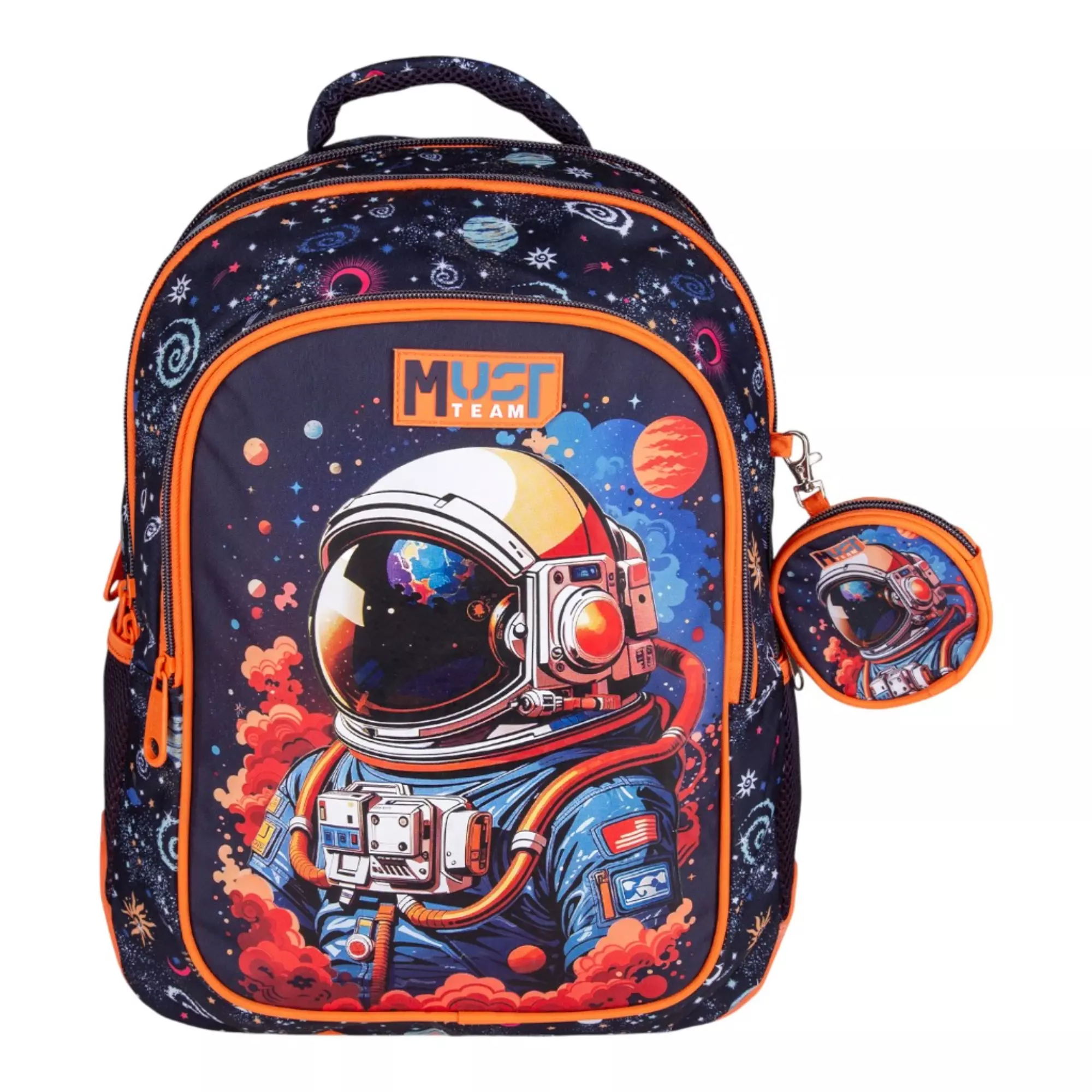 – Η Σχολική Τσάντα Πλάτης Δημοτικού Must Team Astronaut 3 Θήκες (2 κεντρικές θήκες, 1 θήκη στο μπροστινό μέρος) διαθέτει άνετο χώρο για τα βιβλία, τα τετράδια, την κασετίνα και όλα τα απαραίτητα σχολικά είδη γραφής