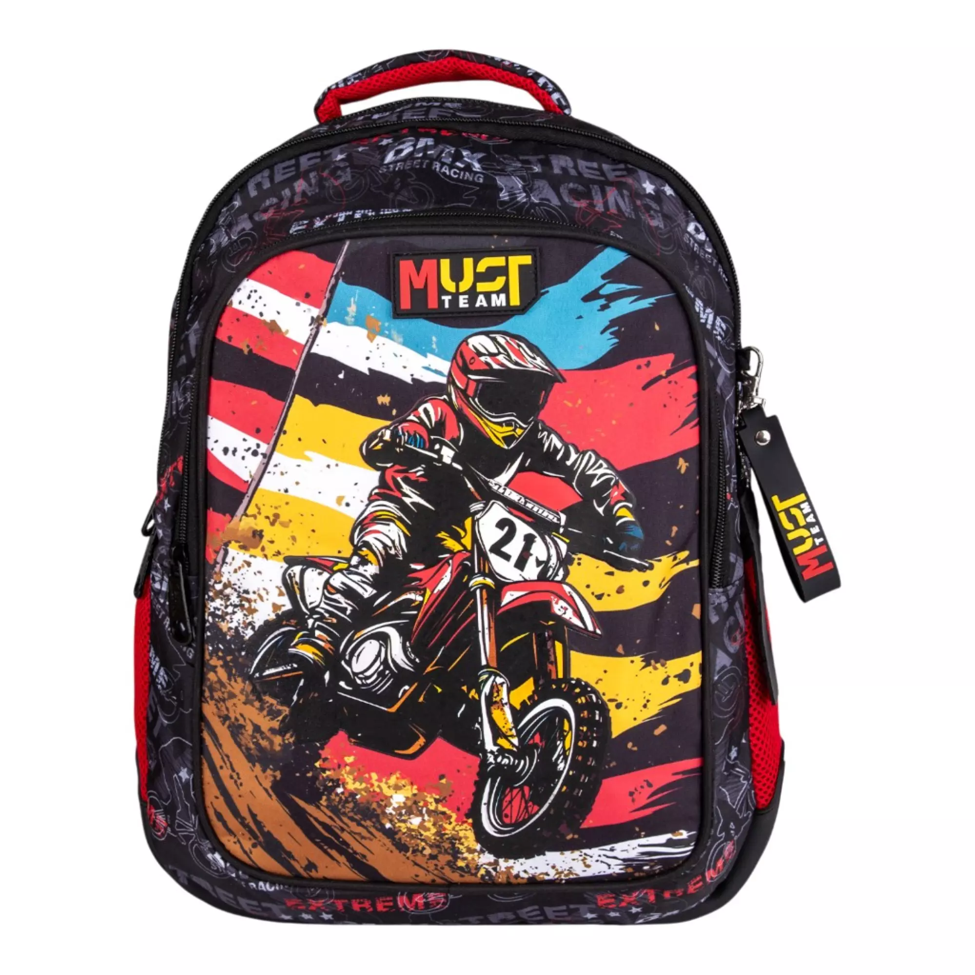 Η Σχολική Τσάντα Πλάτης Δημοτικού Must Team Bike 3 Θήκες είναι η ιδανική επιλογή για κάθε μαθητή που θέλει να συνδυάσει στυλ, άνεση και ιδιαίτερη εμφάνιση στο σχολείο! Πρακτική και ανθεκτική σχολική τσάντα δημοτικού με εργονομικό σχεδιασμό για ασφαλή, άνετη και εύκολη μεταφορά όλων των απαραίτητων σχολικών ειδών στο σχολείο. Ένα ξεχωριστό σακίδιο πλάτης δημοτικού με σχέδιο μοτοσυκλέτα σε ανάγλυφη εκτύπωση που θα ενθουσιάσει!