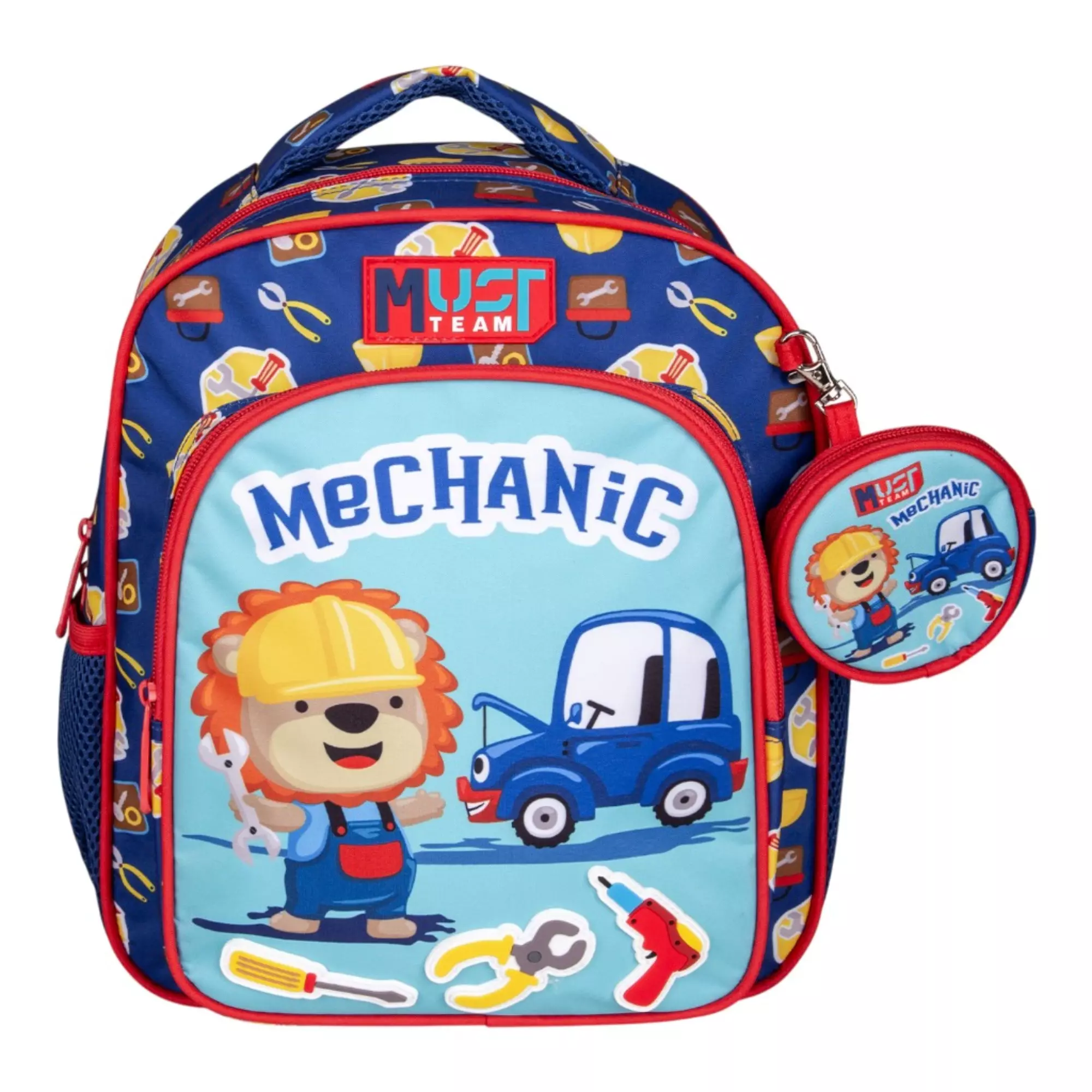 Η Σχολική Τσάντα Πλάτης Νηπίου Must Team Mechanic 2 Θήκες ξεχωρίζει για το εντυπωσιακό σχέδιο λιονταράκι μάστορας που θα ενθουσιάσει τους μικρούς μαθητές στο σχολείο. Ιδανική τσάντα πλάτης προσχολικής ηλικίας που μεταφέρει με ασφάλεια, άνεση και ευκολία όλα τα απαραίτητα σχολικά είδη στον παιδικό σταθμό και το νηπιαγωγείο.