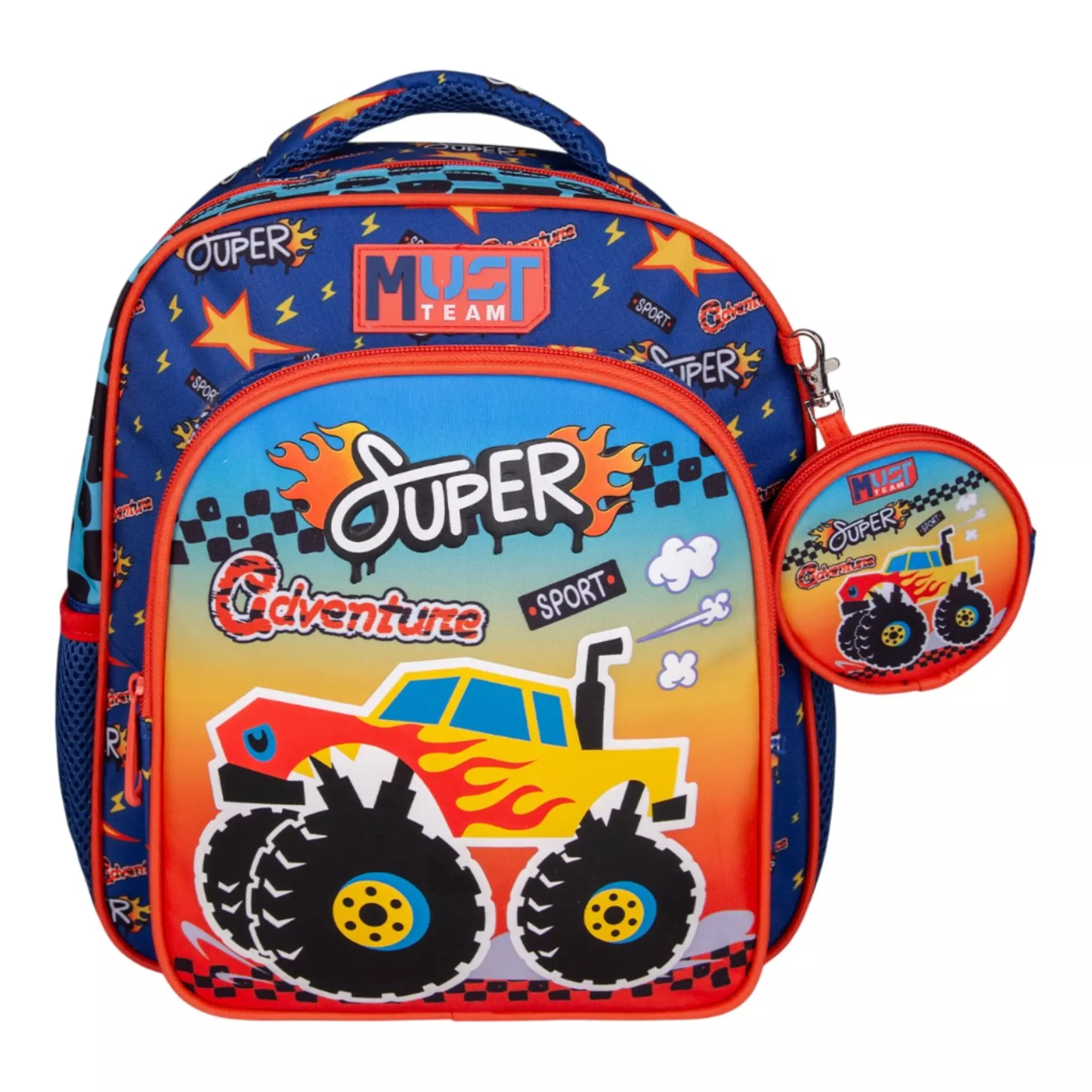 Η Σχολική Τσάντα Πλάτης Νηπίου Must Team Monster Car 2 Θήκες ξεχωρίζει για το εντυπωσιακό σχέδιο αυτοκίνητο με μεγάλες ρόδες που θα ενθουσιάσει τους μικρούς μαθητές στο σχολείο. Ιδανική τσάντα πλάτης προσχολικής ηλικίας που μεταφέρει με ασφάλεια, άνεση και ευκολία όλα τα απαραίτητα σχολικά είδη στον παιδικό σταθμό και το νηπιαγωγείο.