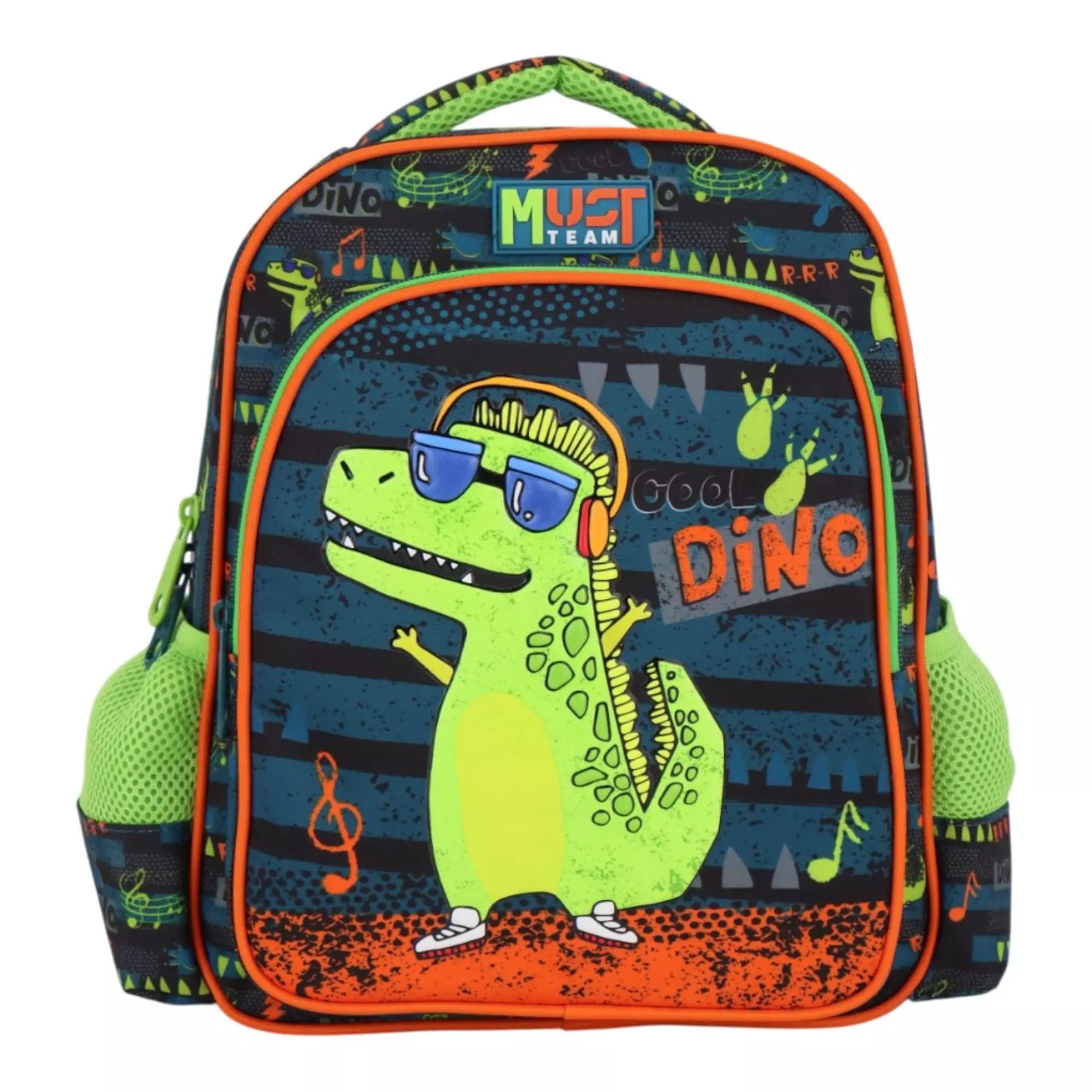 Η Σχολική Τσάντα Πλάτης Νηπίου Must Team Music Dino 2 Θήκες ξεχωρίζει για το εντυπωσιακό σχέδιο δεινόσαυρος με ακουστικά που θα ενθουσιάσει τους μικρούς μαθητές στο σχολείο. Ιδανική τσάντα πλάτης προσχολικής ηλικίας που μεταφέρει με ασφάλεια, άνεση και ευκολία όλα τα απαραίτητα σχολικά είδη στον παιδικό σταθμό και το νηπιαγωγείο.