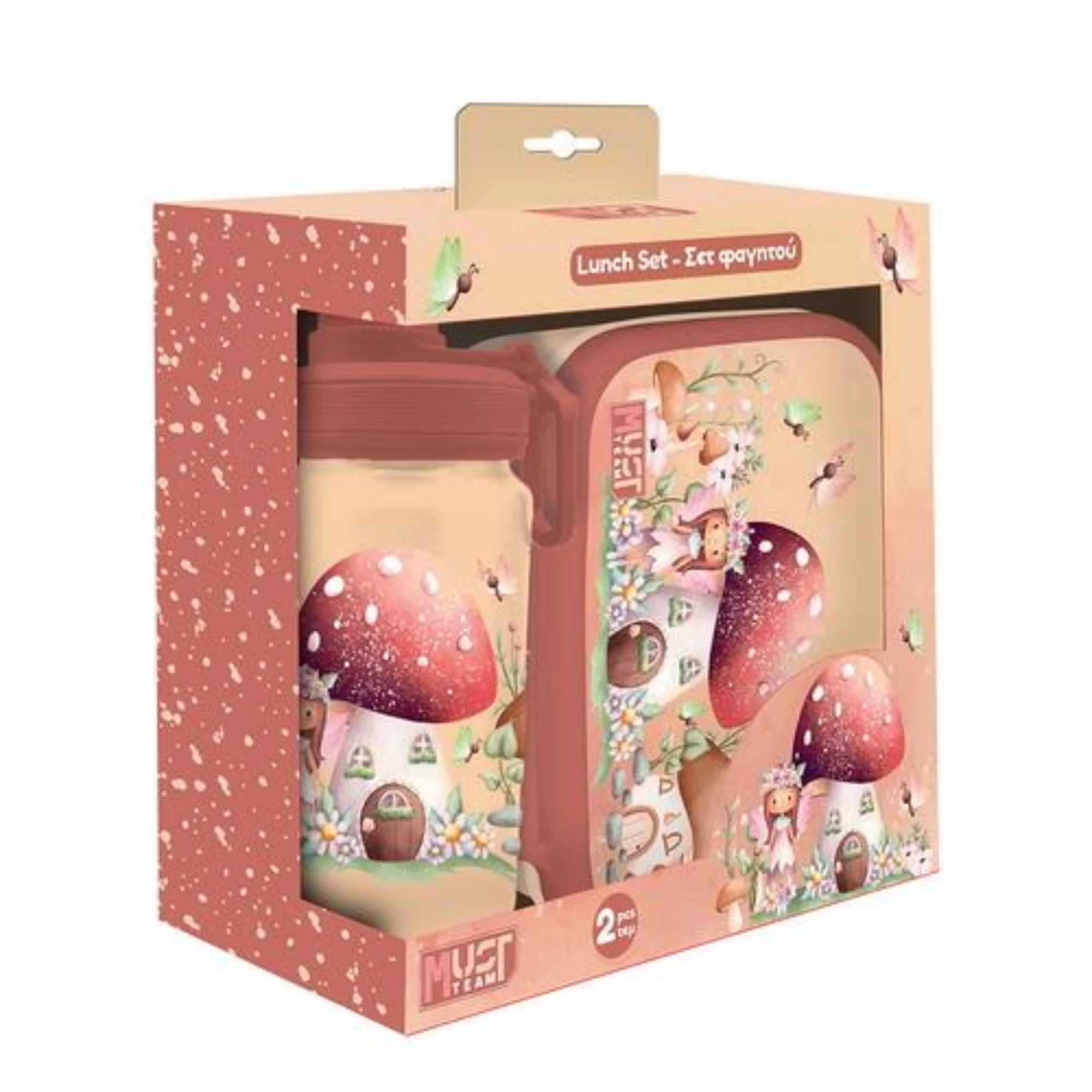 Το Σετ Φαγητού Must Team Romantic Fairy περιέχει 1 φαγητοδοχείο PP και 1 παγούρι αλουμινίου για να απολαμβάνουν τα παιδιά κάθε στιγμή το σπιτικό τους γεύμα στο σχολείο, στην παιδική χαρά και στη βόλτα! Το φαγητοδοχείο PP ξεχωρίζει για το αεροστεγές κλείσιμο, ενώ το παγούρι ανοίγει-κλείνει εύκολα και εξασφαλίζει την προστασία από διαρροές.