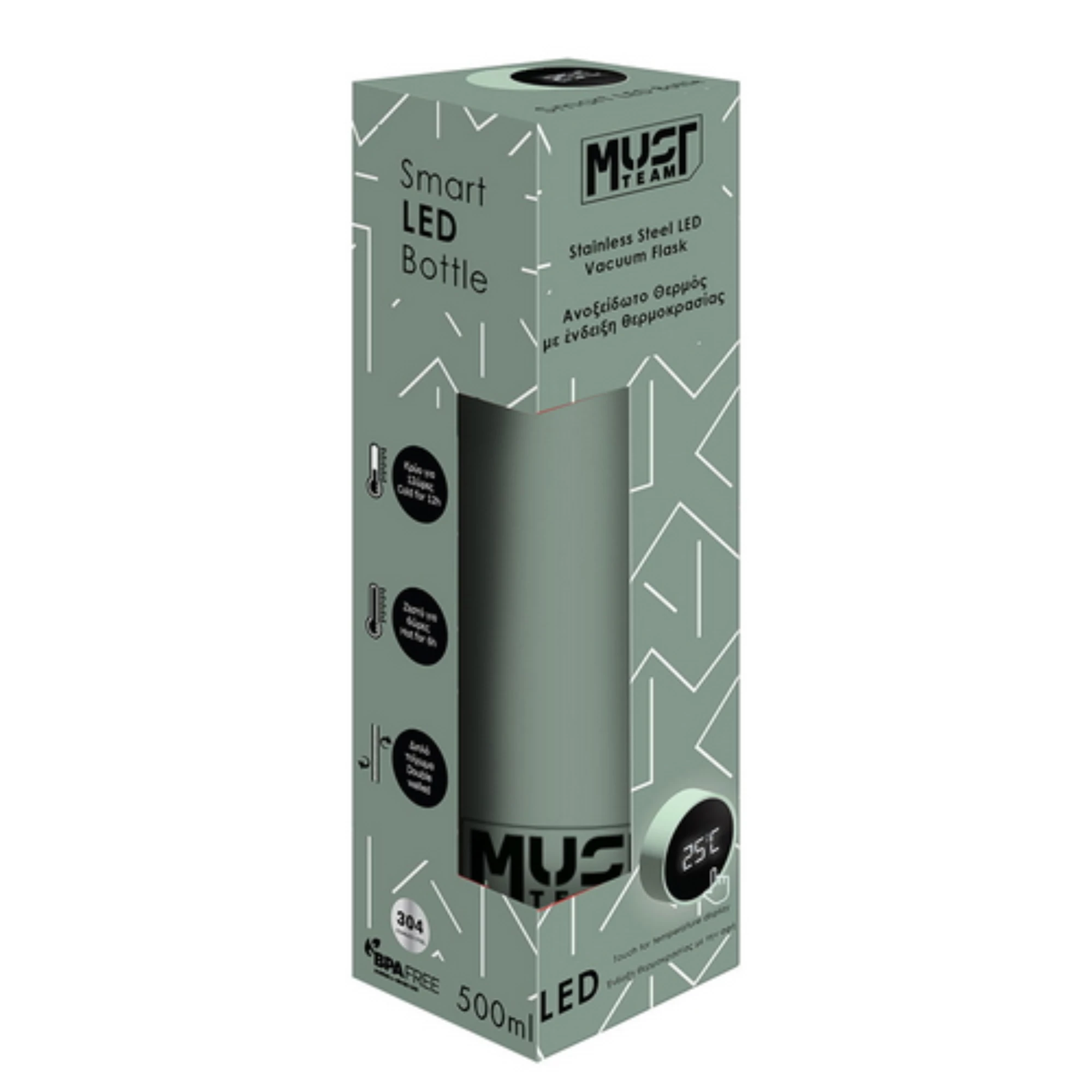 Θερμός Ανοξείδωτο Must Team Χακί 500 ml με ένδειξη θερμοκρασίας, ιδανικό για να έχετε το αγαπημένο σας ρόφημα μαζί σας όλη μέρα στο σχολείο, τη δουλειά, το γυμναστήριο ή τις βόλτες. Κατασκευασμένο από ανθεκτικό ανοξείδωτο ατσάλι, διατηρεί τα ροφήματα ζεστά ή κρύα για πολλές ώρες, χάρη στη θερμομονωτική του τεχνολογία. Το καπάκι διαθέτει ενσωματωμένη LED οθόνη αφής, προσφέροντας άνεση και ασφάλεια στη χρήση.